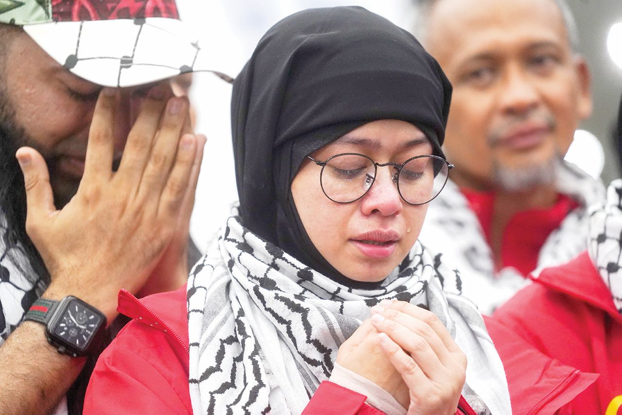 SUAMI Ardell iaitu Nadzmi Adhwa sabar menanti kepulangan isterinya dari misi Global Sumud Flotilla.